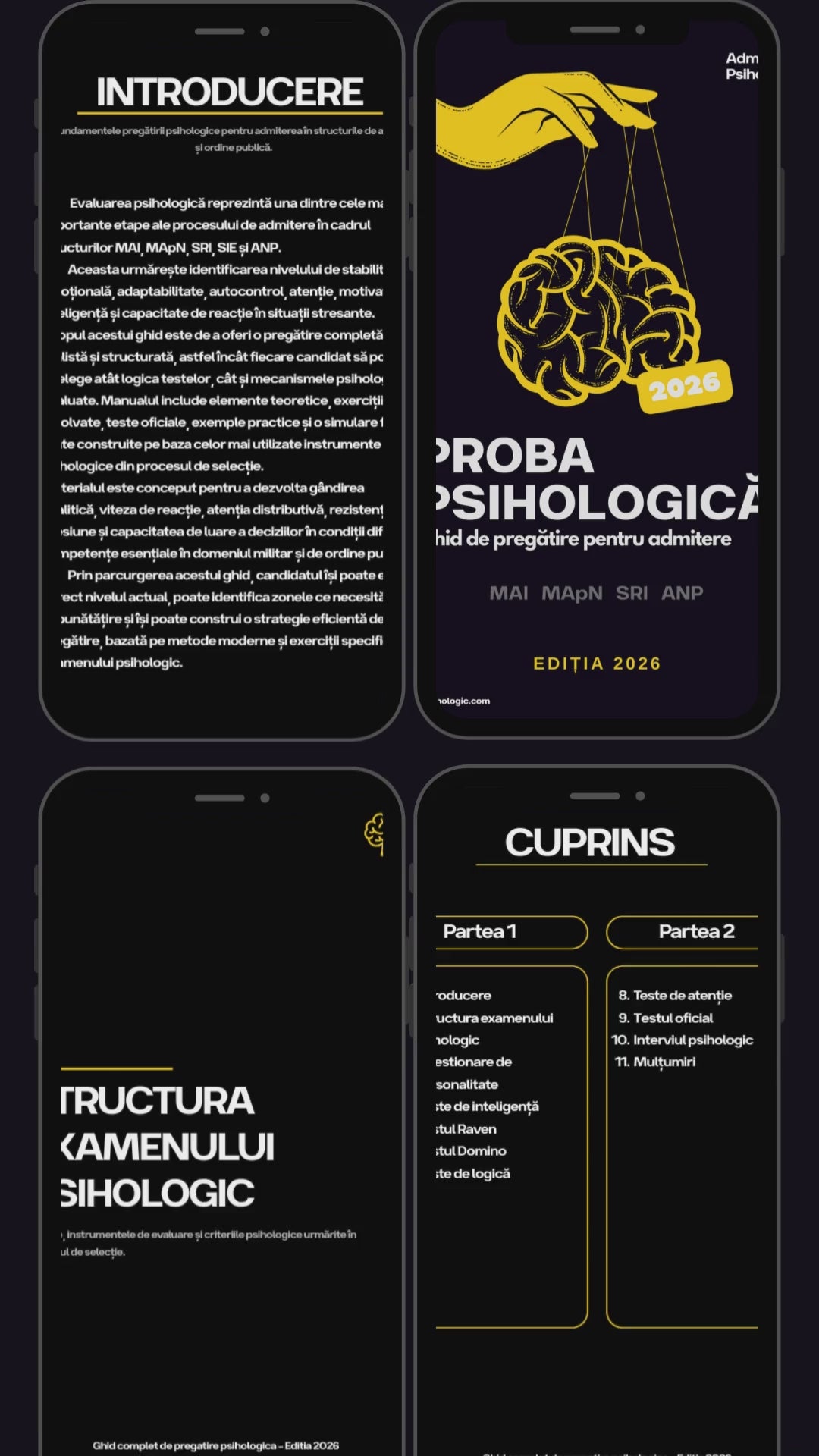 Găsești ghiduri, teste, modele și resurse pentru pregătirea examenului psihologic la MAI, MAPN, SRI, SIE, ANP și alte instituții. Toate sunt în format digital (PDF).